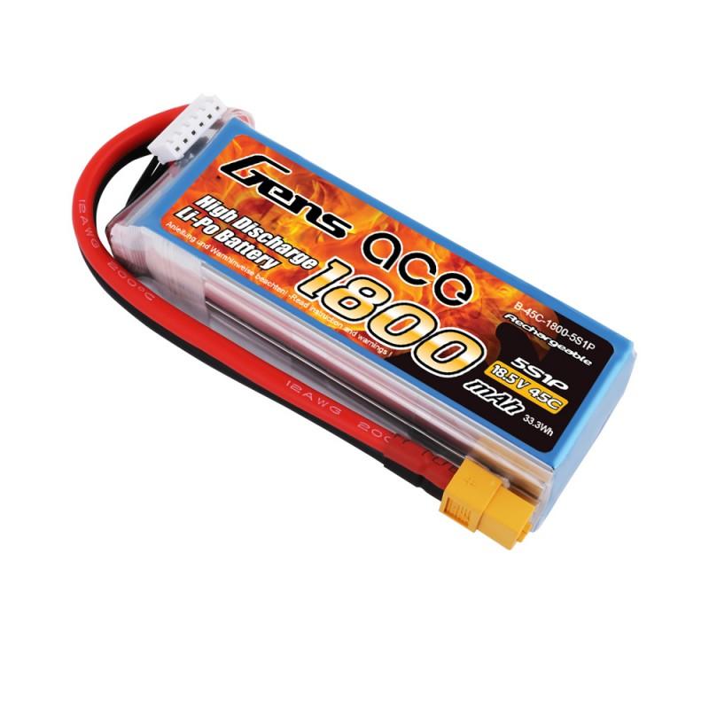 Batterie Lipo Gens Ace 1800mAh 18.5V 45C 5S1P XT60