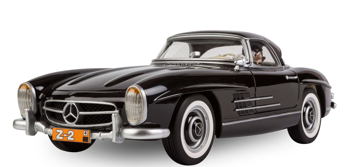LE GARAGE DE FRANQUIN, SPIROU: MERCEDES 300SL ROADSTER 1957 « L’OMBRE DU Z » – véhicule en résine 38 cm