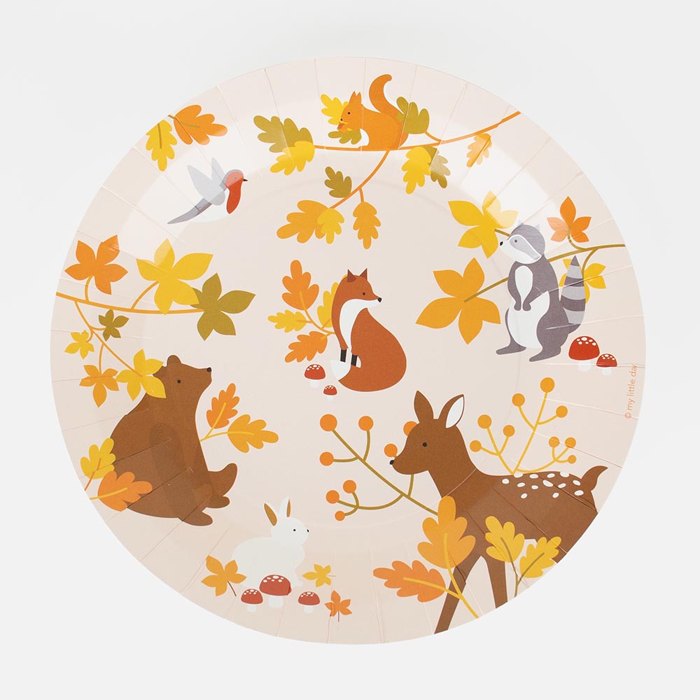Assiette en carton : 8 assiettes animaux des bois