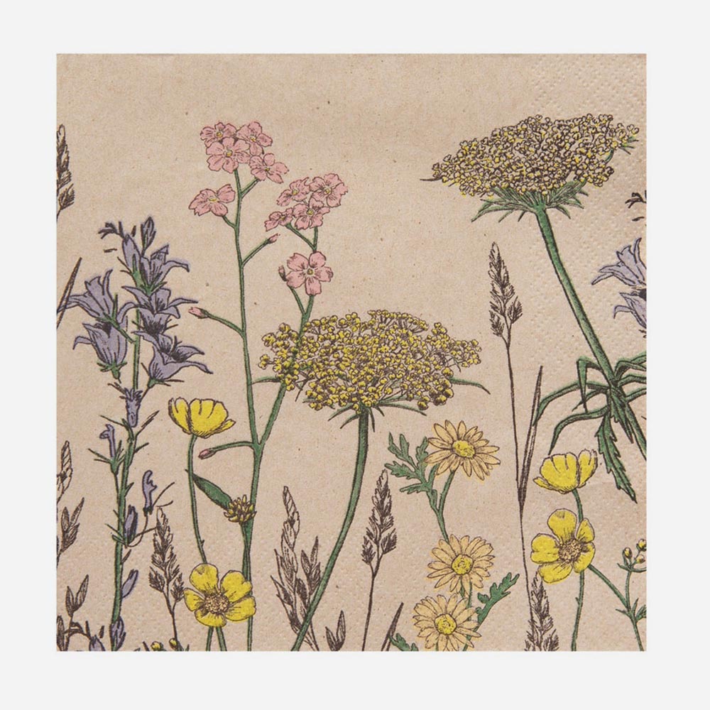 Serviettes en papier : 20 serviettes fleurs sauvages